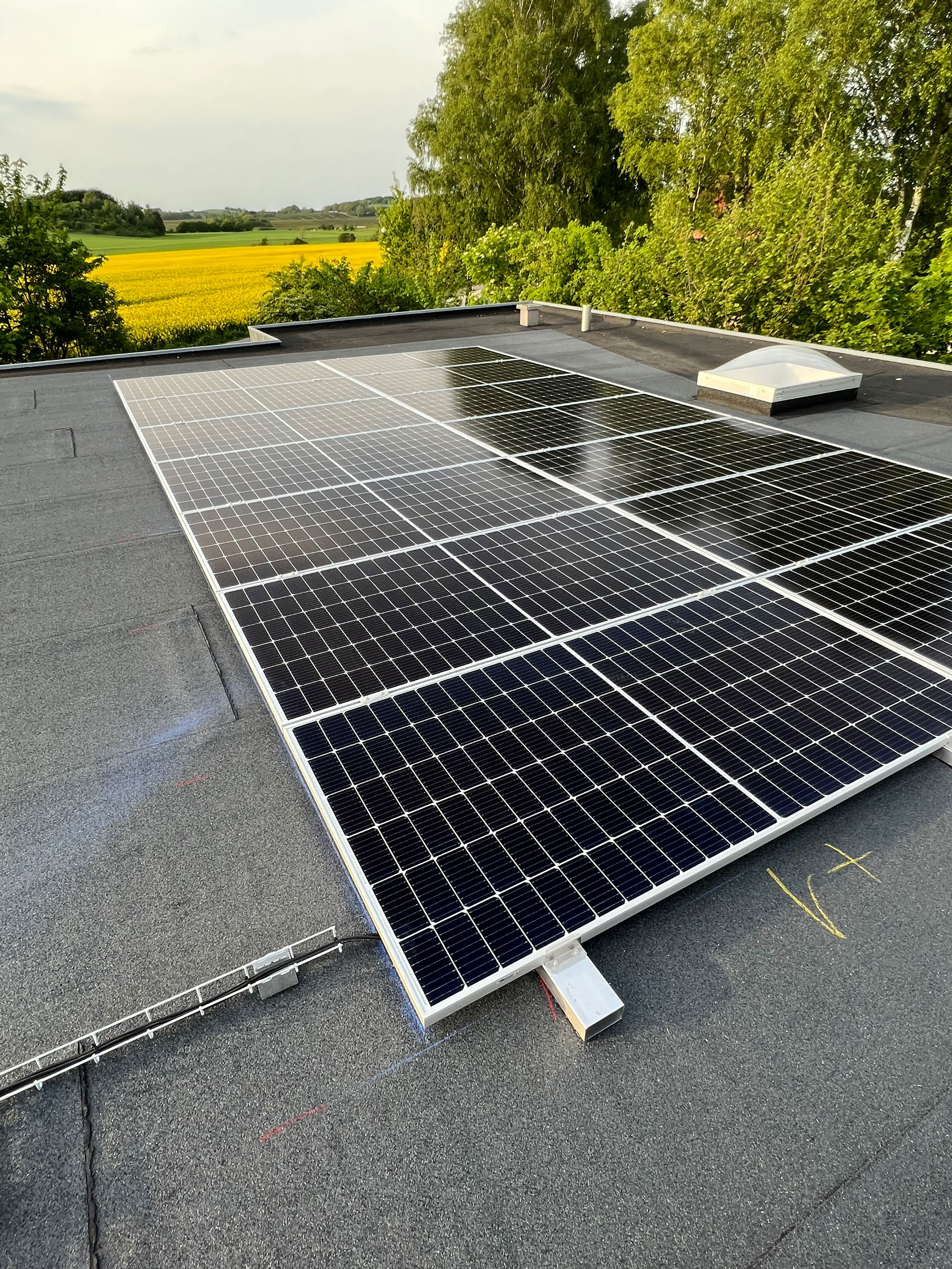 Villaens solcelleanlæg er monteret med det patenterede PWP montagesystem, det vil sige at solpanelerne er monteret på skinner, som er klæbet direkte på taget. Denne løsning har flere fordele. Den ene er at når panelerne er monteret parallelt med taget, så man ikke ser dem nedefra, og derudover sker der ikke en perforering af tagmembranen, når man monterer, da skinnerne klæbes på med en specialudviklet klæber.