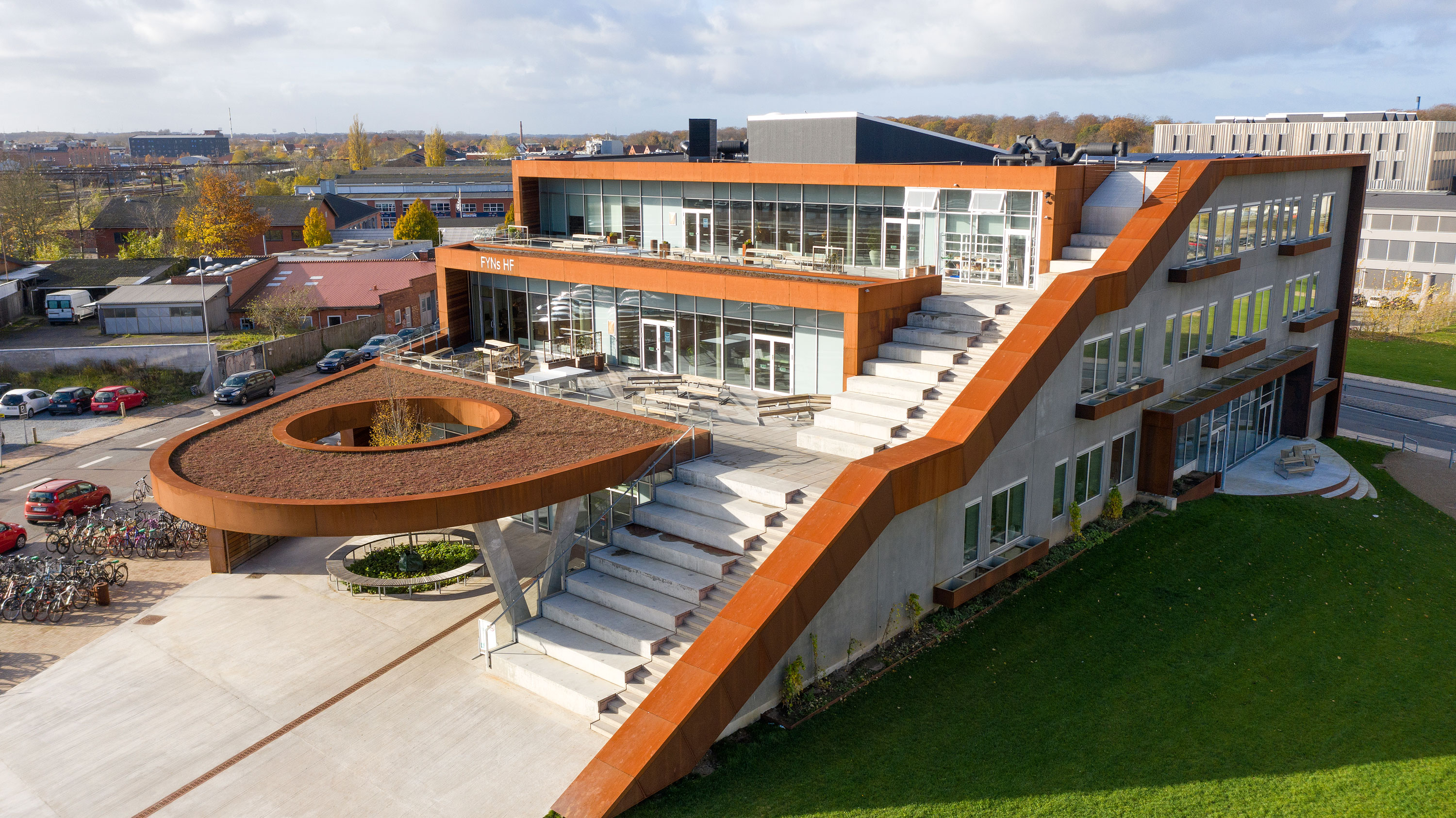Phønix Tag Fyn A/S har udført tagdækning og sedumtag på uddannelsesinstitutionen HF & VUC Fyn nye bygning, som samler uddannelsesinstitutionens HF-uddannelser i én bygning.