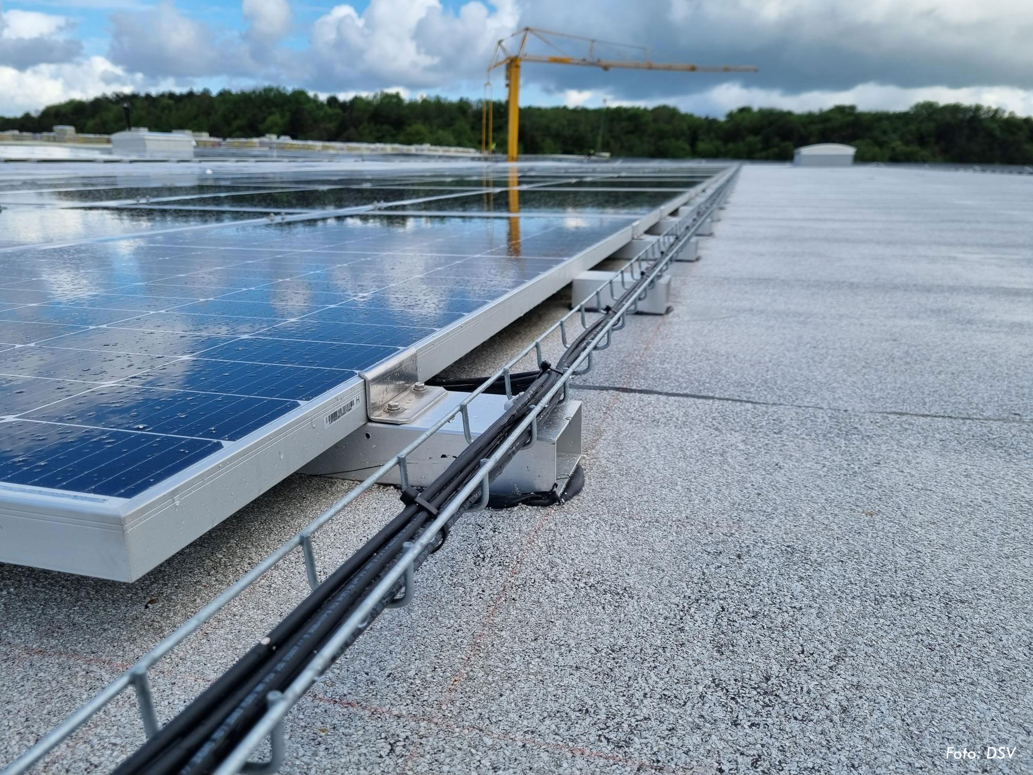 Udover valget af NOXOUT tagpap har DSV også valgt at få monteret et solcelleanlæg på taget.
