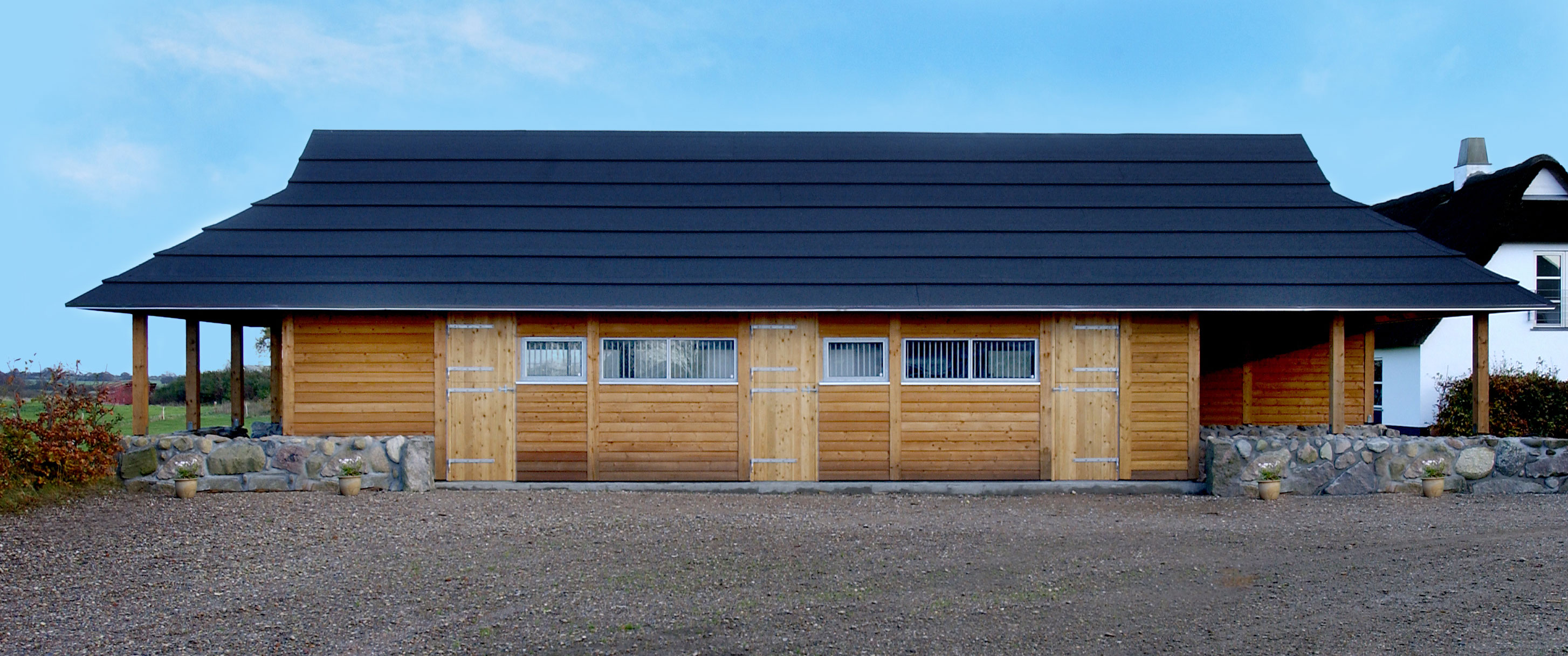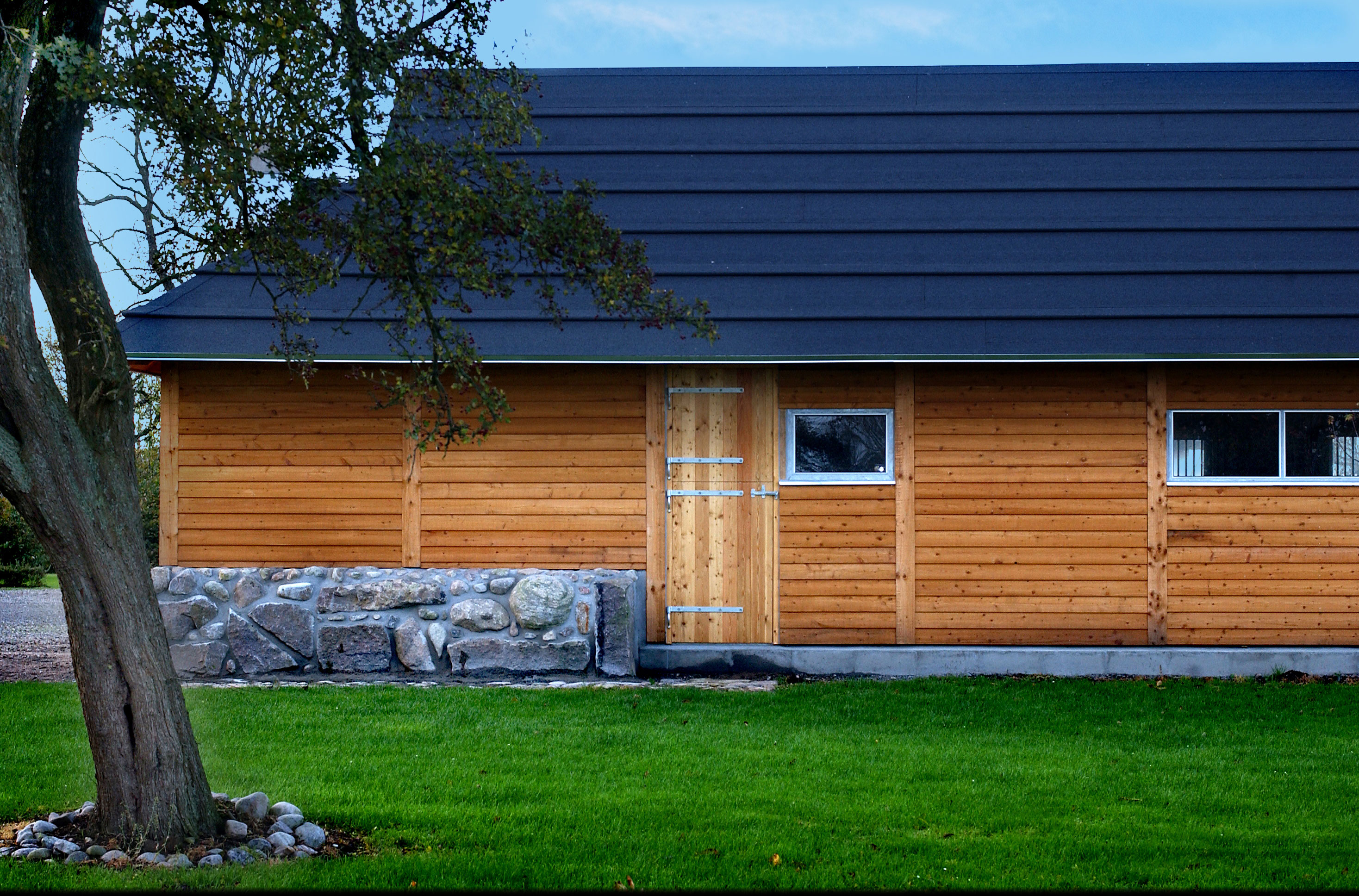 Et eksempel på en Plankedækning er denne hestestald, som er en nybygning til en gammel slægtsgård.