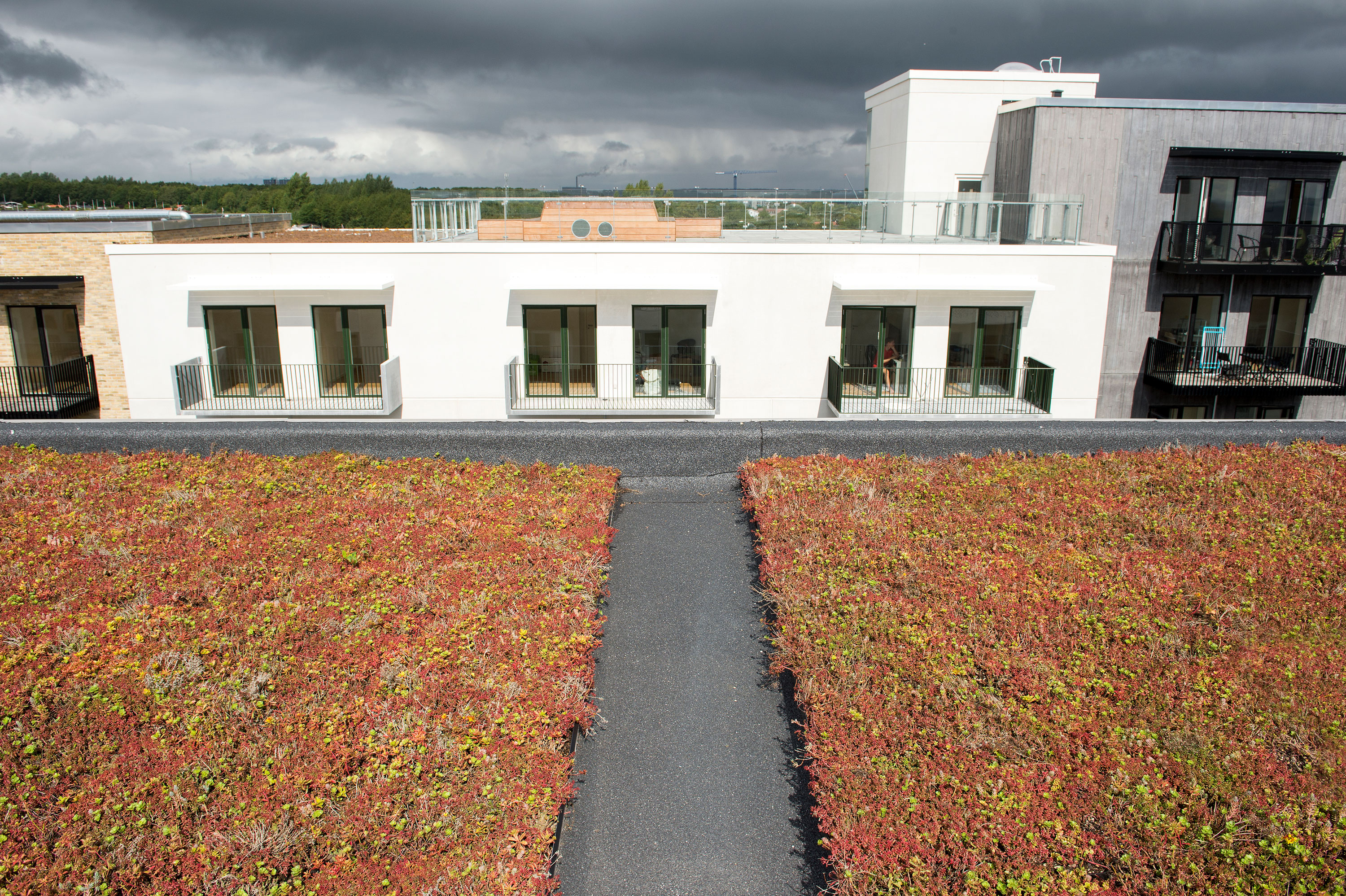 Byggeriet viser, hvordan man udover at have et flot samspil mellem de enkelte dele på taget, også et byggeri, som både fremstår varieret i sit udtryk, men opfylder ønsket om fokus på både klimatilpasning (de grønne tage) samt vedvarende energi (solceller).