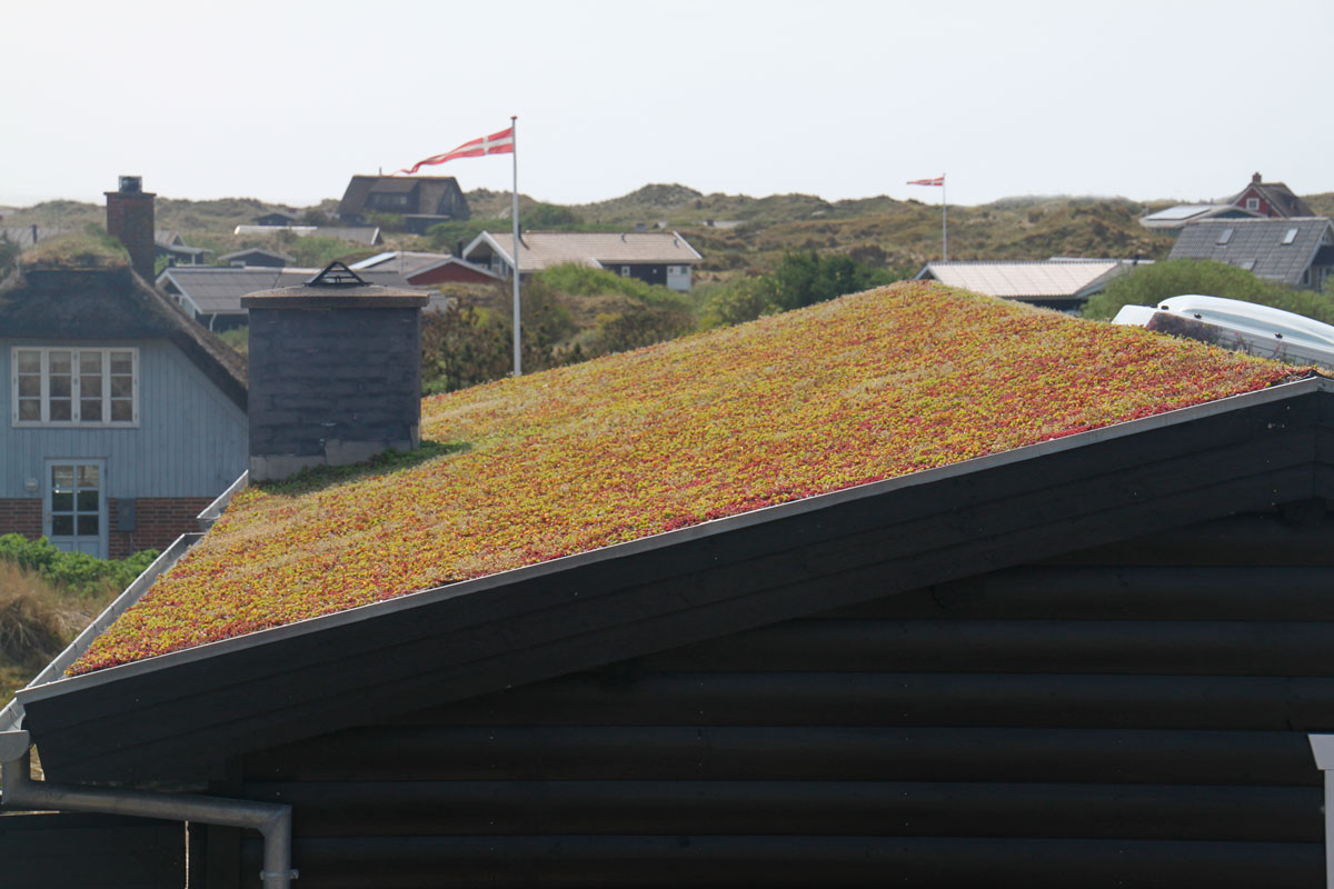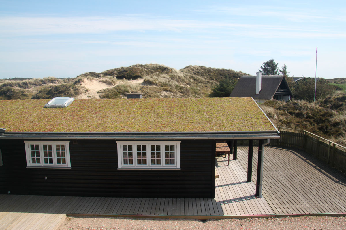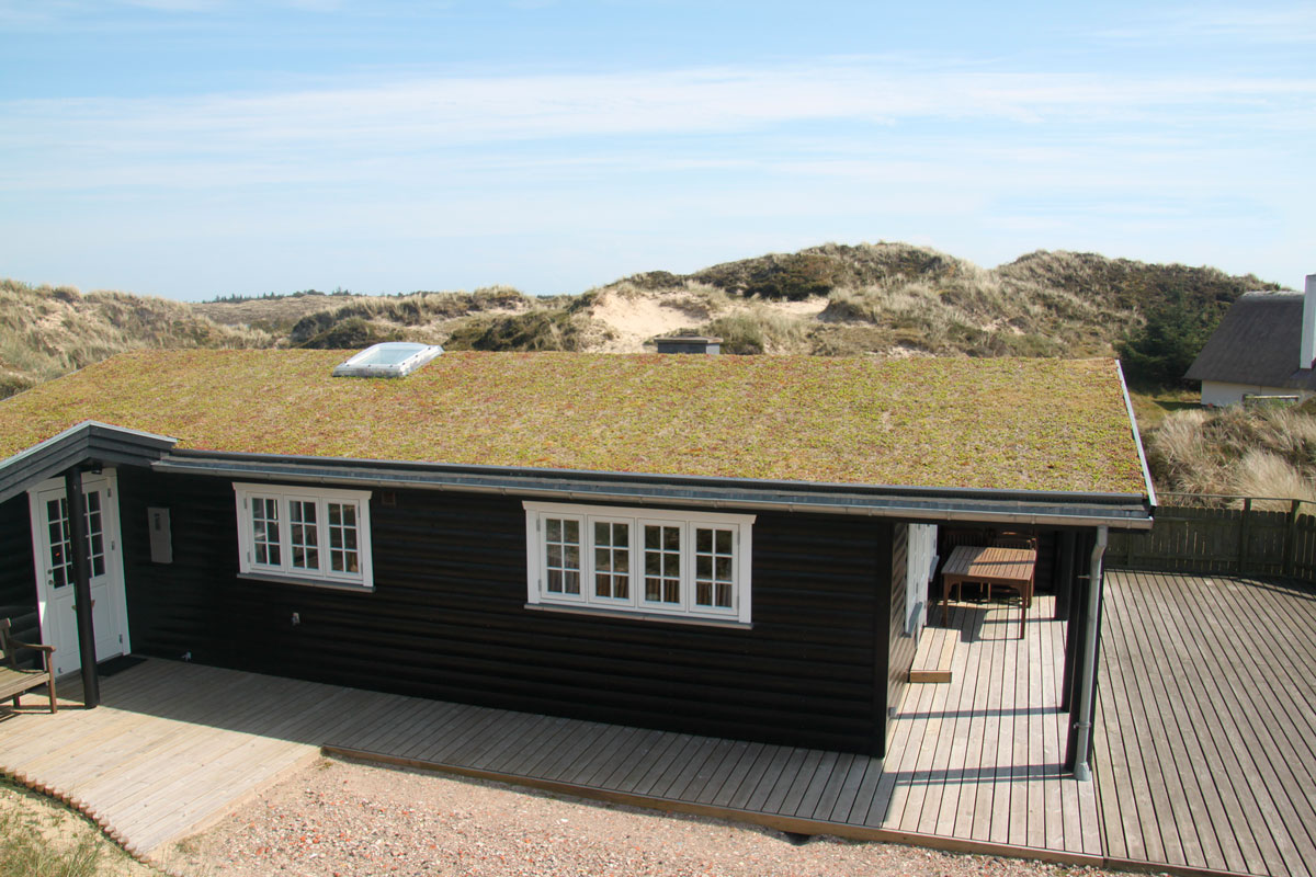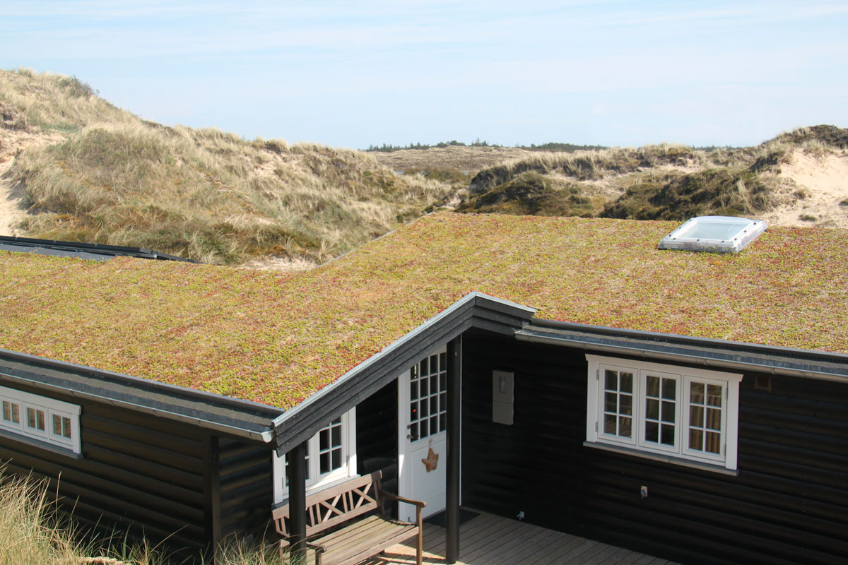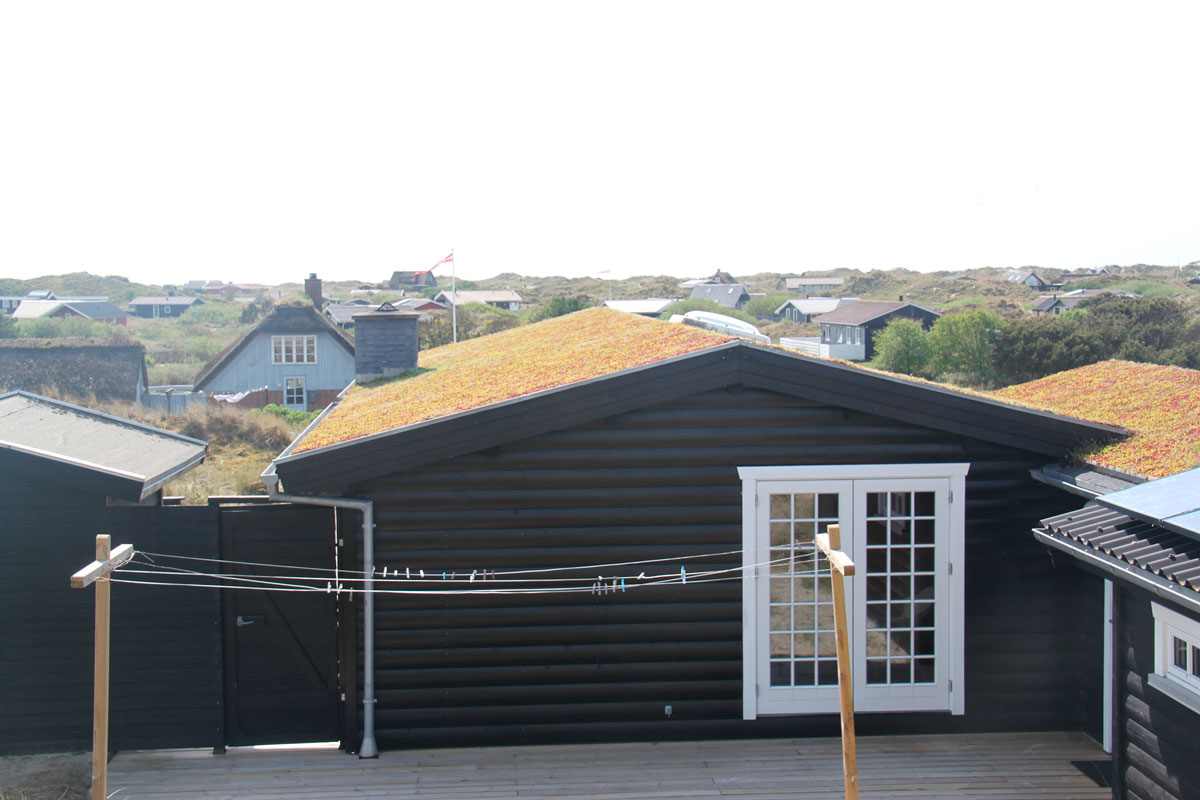 Dette sommerhus på Fanø er monteret med Nature Impact Roof (Grønt tag).