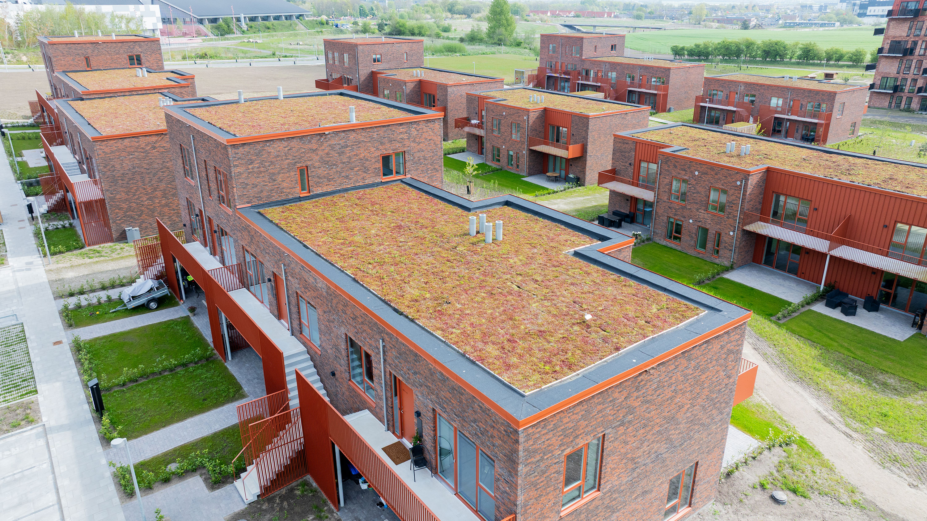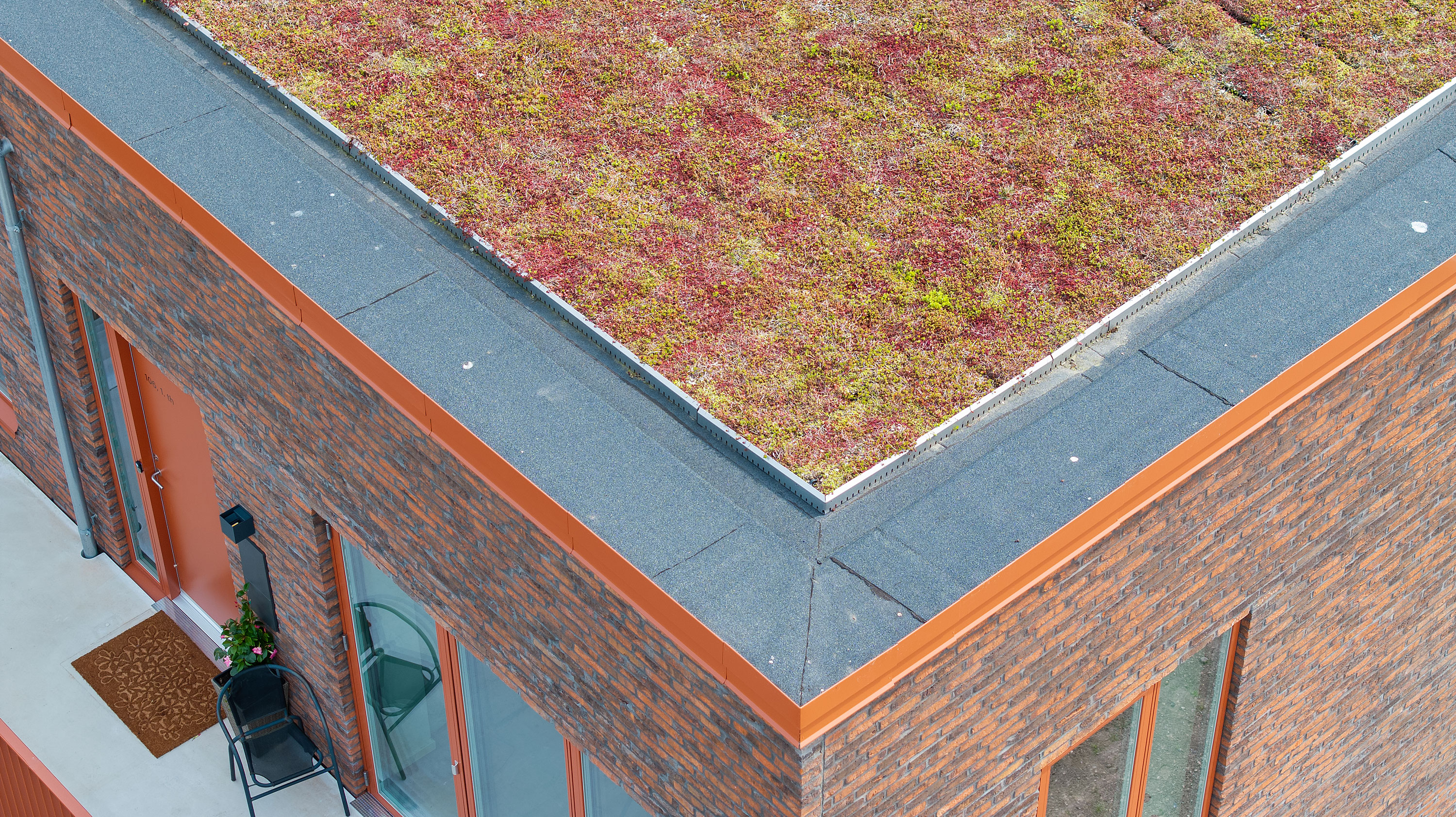 Sedumtaget giver bygningerne en markant og flot femte facade, hvilket er en stor fordel i et byggeri med byggeri med varierende etagehøjder, hvor fra nogle etager har udsigt til et flot, grønt tag.