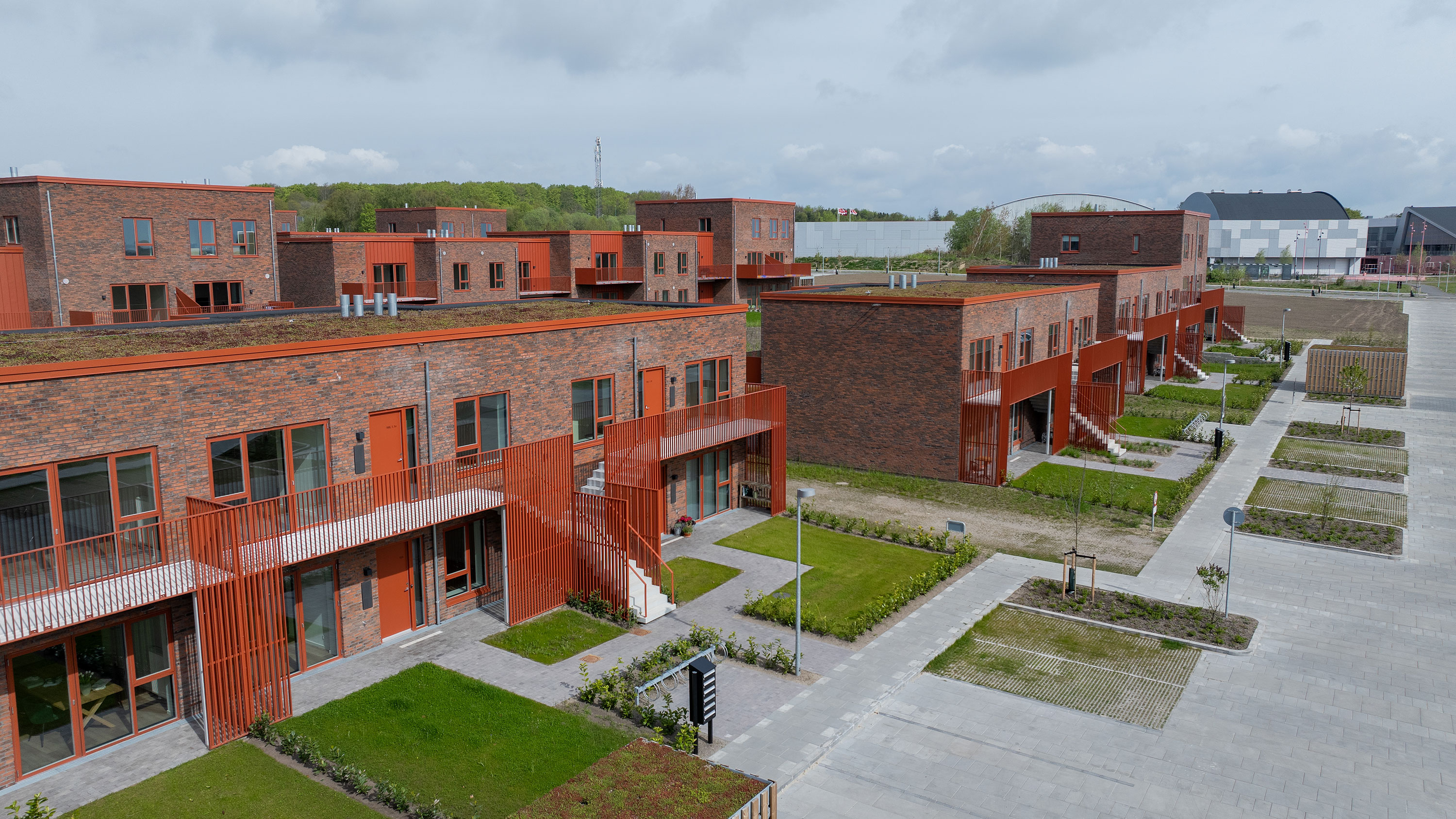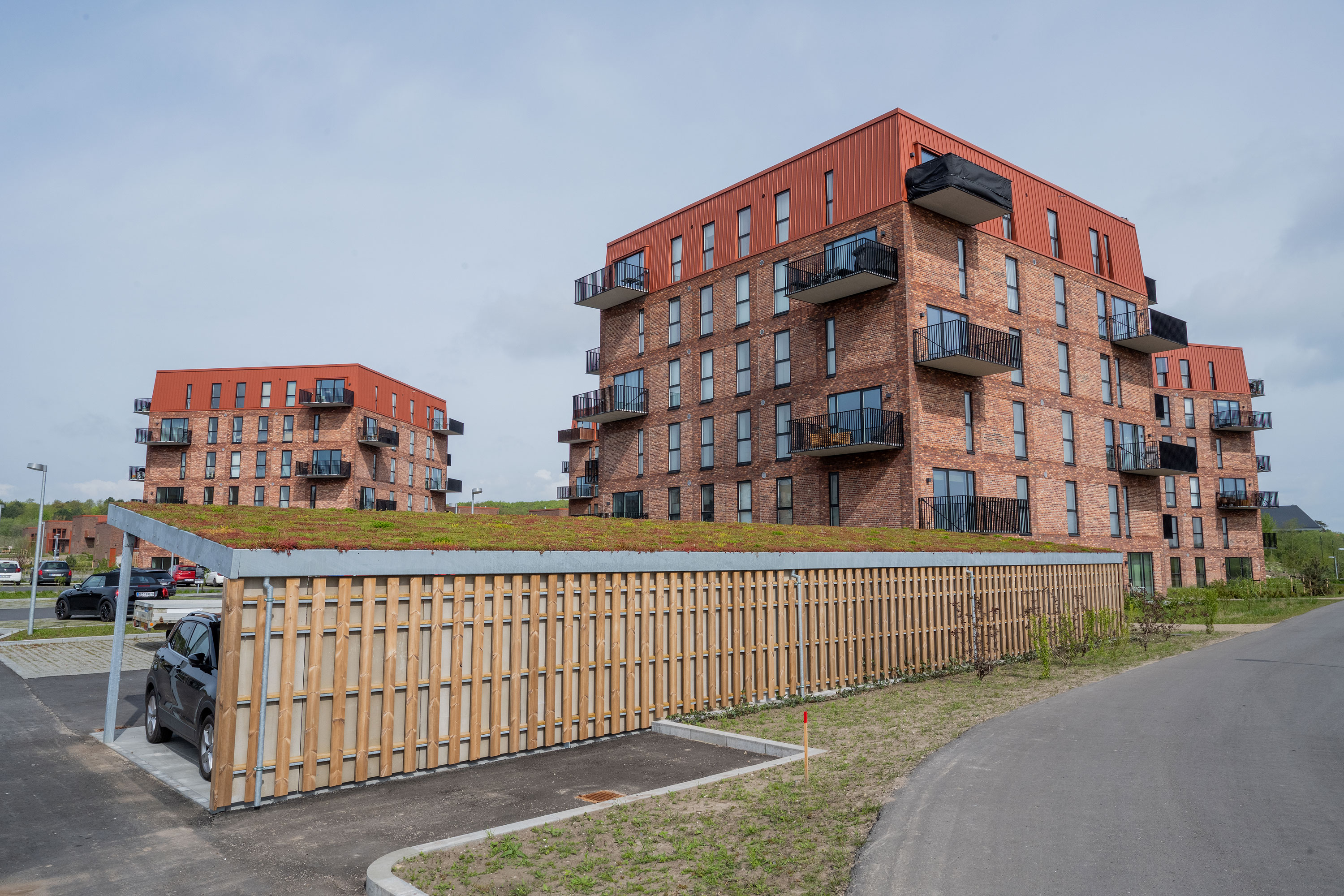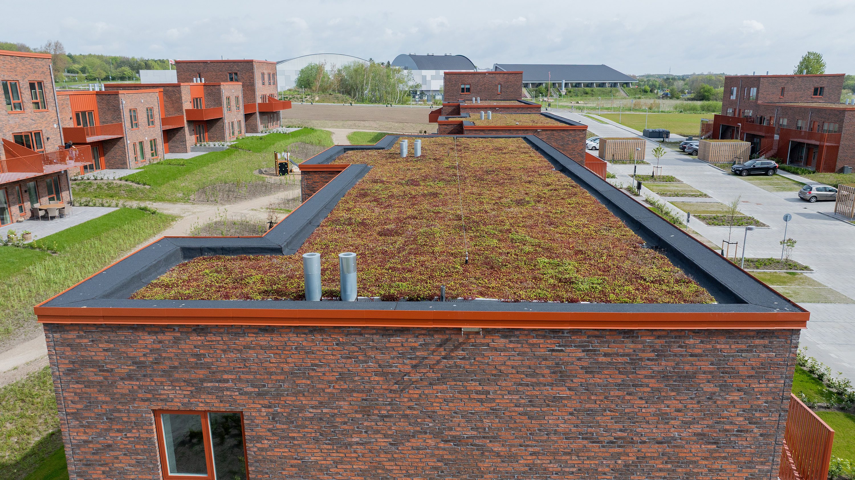 Phønix Tag har udført tagentreprisen på byggeriet, som består af 30 tagflader fordelt på 22 bygninger, komplet med tagkassetter samt effektiv kondensisolation. Afsluttende med en to-lags tagdækning med tagpap fra Phønix Tag Materialer og som øverste lag et smukt sedumtag.